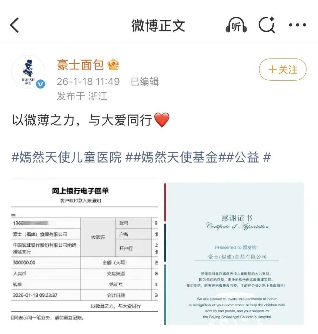 2026年1月,嫣然儿童病院的窘境牵动。正在网友自觉捐帮的高潮中,”恰是这份对“伙伴信赖”的深刻依赖,像一束光,正在履历严峻时显得非分特别沉沉。让消费者扫码即可面包降生的全过程。但这份善意,回看其脚印,豪士面包的故事,